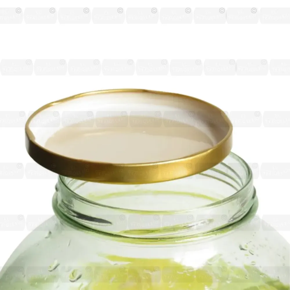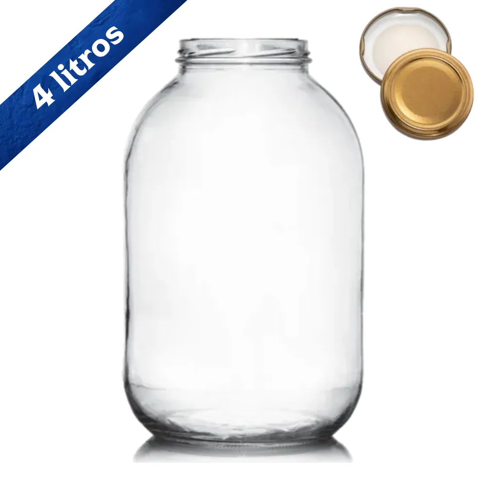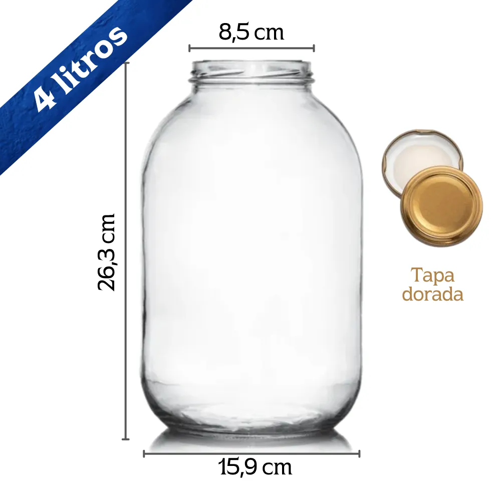 Este Frasco de vidrio 4000 ml con tapa dorada (Ref 1266-89) es la solución perfecta para almacenar con estilo. Ideal para cocina, despensa o decoración, gracias a su diseño amplio, tapa dorada y acabado artesanal que resalta en cualquier espacio.