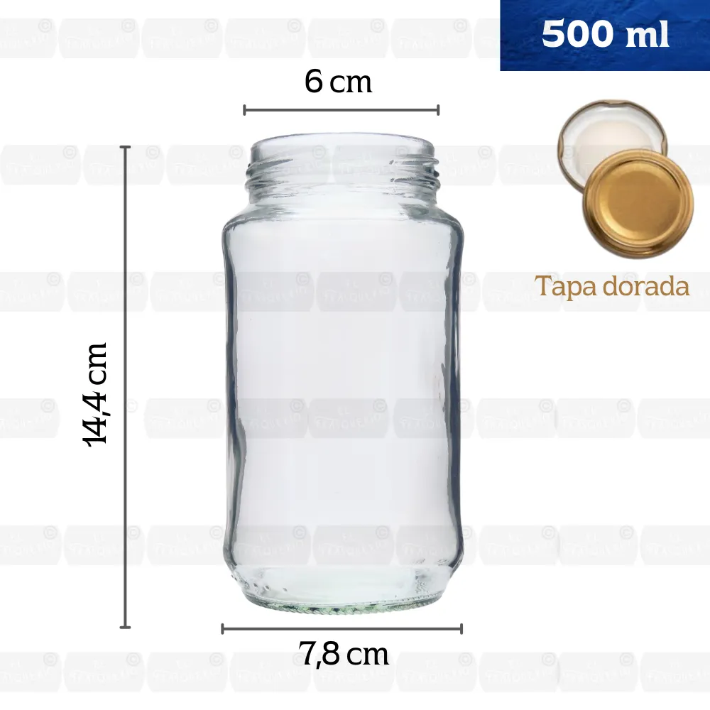 - El frasco de vidrio 500 ml perfecto para envasar conservas, salsas y encurtidos.