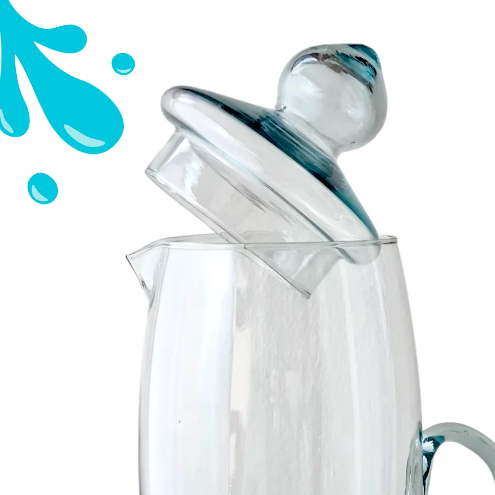Elegante jarra de vidrio transparente modelo Tabaco de 2.1 litros con tapa. Su diseño alto y estilizado es perfecto para servir bebidas en cualquier ocasión, combinando gran capacidad y sofisticación.